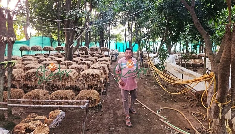 எங்களது தோட்டத்தில் இருக்கும் மாமரத்தின் நிழலில் இந்தப் படுக்கையை உருவாக்கினேன். கோடைக்காலமான மே மற்றும் ஜூன் மாதங்களில்கூட மரத்திற்குக் கீழே 10 டிகிரி வெப்பம் குறைவாகத்தான் இருக்கும். அது காளான் வளர்க்க மிகவும் உகந்ததாக இருந்தது. மரத்து நிழலில் அதிக அளவில் ஆக்ஸிஜன் மற்றும் ஈரப்பதமும் இருந்தது. இதன் மூலம் தரமான காளான்கள் கிடைத்தது. இப்போது 2,000 காளான் படுக்கைகள் உருவாக்கி இருக்கிறேன். இதற்குத் தேவையான வைக்கோலை 150 ஏக்கர் விவசாய நிலத்தில் இருந்து சேகரித்து அதனை சேமித்து வைத்துக்கொள்கிறேன்.