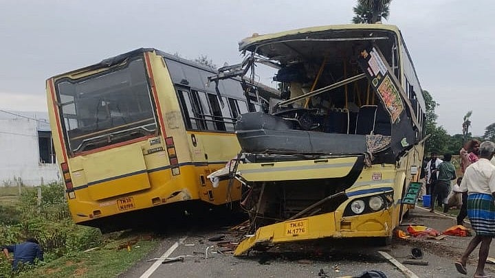 காரைக்குடி–திருப்பத்தூர் சாலையில், பிள்ளையார்பட்டி அருகே காங்கேயத்திலிருந்து காரைக்குடி நோக்கி வந்த அரசுப் பேருந்தும், காரைக்குடியிலிருந்து திண்டுக்கல் நோக்கிச் சென்ற அரசுப் பேருந்தும் நேருக்கு நேர் மோதிக்கொண்டன. இந்த விபத்தில் 11 பேர் உயிரிழந்ததாகவும், 40-க்கும் மேற்பட்டோர் படுகாயமடைந்ததாகவும் முதற்கட்ட தகவல்கள் தெரிவிக்கின்றன.