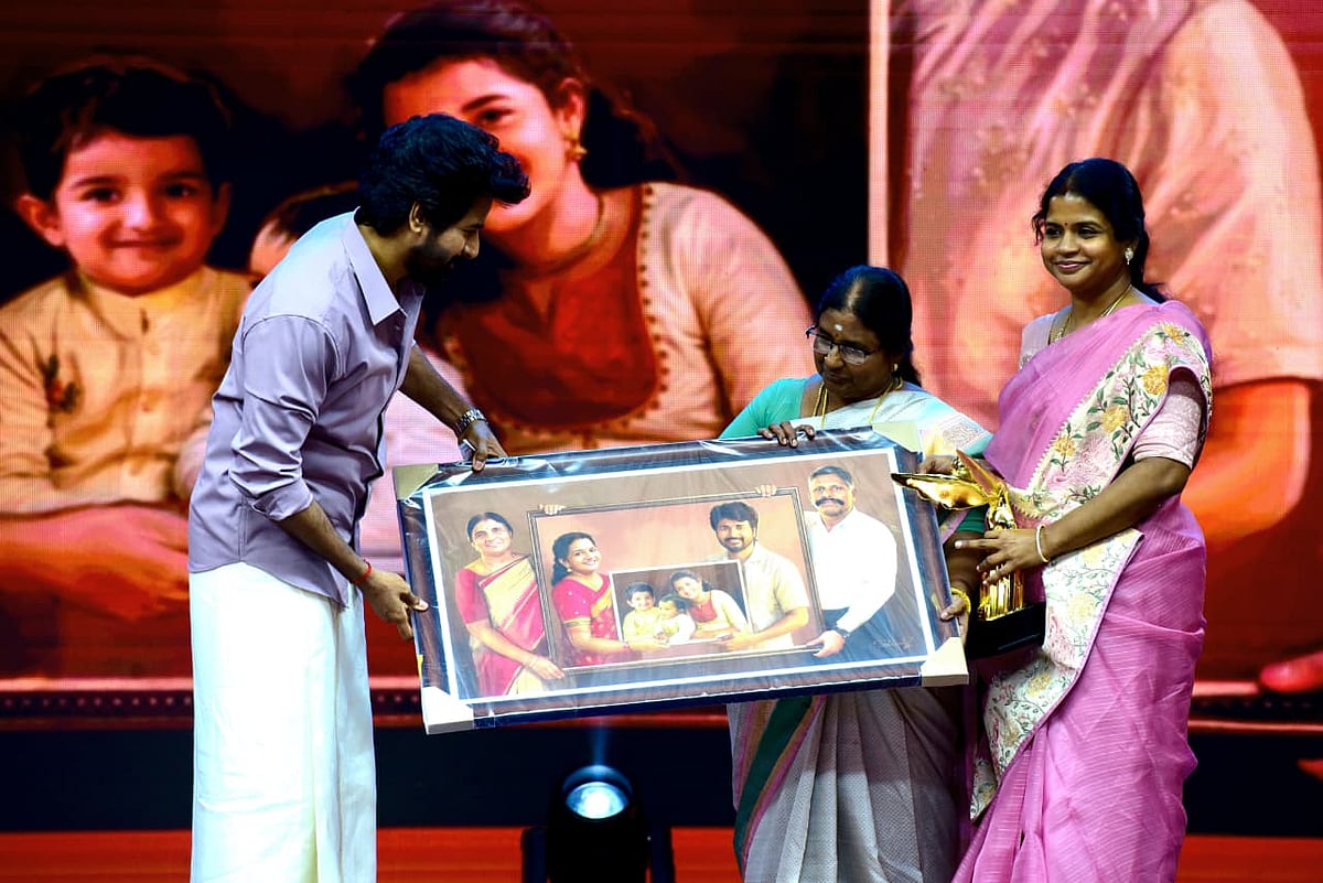 அம்மாவுக்கு கிடைத்த விருதுபற்றி பேசிய சிவகார்த்திகேயன், "அப்பா இறக்கும்போது நான் ஃபர்ஸ்ட் இயர், அக்கா வந்து காலேஜ் செகண்ட் இயர். அதுக்கப்புறம் எல்லாருக்குமே ரெண்டு கேள்விதான் 'அடுத்து என்ன செய்யப் போறோம் லைஃப்ல'.