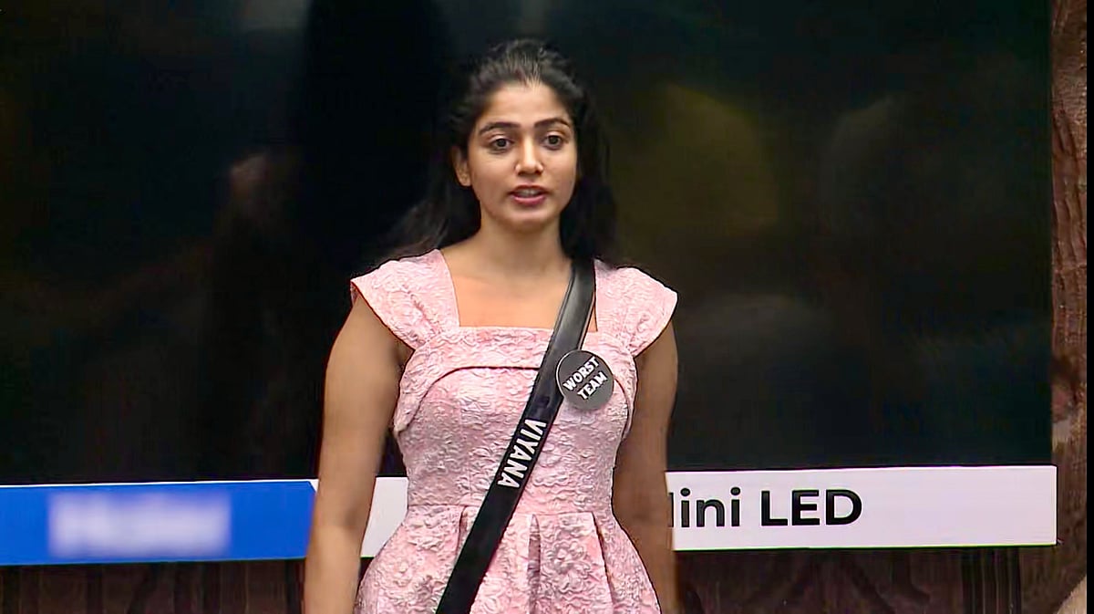 வீக்லி டாஸ்க்கில் மோசமாக பங்கேற்ற இருவரை தேர்ந்தெடுக்க வேண்டும். பல சமயங்களில் நியாயமாக நடந்து கொண்டாலும் வியானாவிற்குள்ளும் ஒரு சிறிய விஷ பாட்டில் இருக்கிறது. தன்னை அழ வைத்த விக்ரமை அவர் தேர்வு செய்ய, சொல்லி முடிக்கும் வரை காத்திருந்த பிக் பாஸ் ‘விக்ரம் பெயரை சொல்ல முடியாது. அவர் தல போட்டியில் இருக்கிறார்’ என்று நிராகரித்தார். எனவே சாண்ட்ராவின் பெயரை வியானா சொன்னது சிறப்பான தோ்வு.
