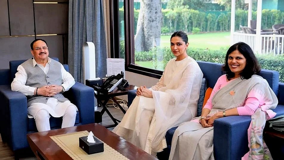 பாஜக தேசிய தலைவரும் மத்திய சுகாதார மற்றும் குடும்ப நலத்துறை அமைச்சருமான ஜே.பி.நட்டா, சுகாதார மற்றும் குடும்ப நல அமைச்சகத்தின் (MoHFW) செயலாளரான புன்ய சலிலா ஶ்ரீவஸ்தவா உடன் இருக்கும் புகைப்படத்தைப் பகிர்ந்துள்ளார் தீபிகா படுகோனே.