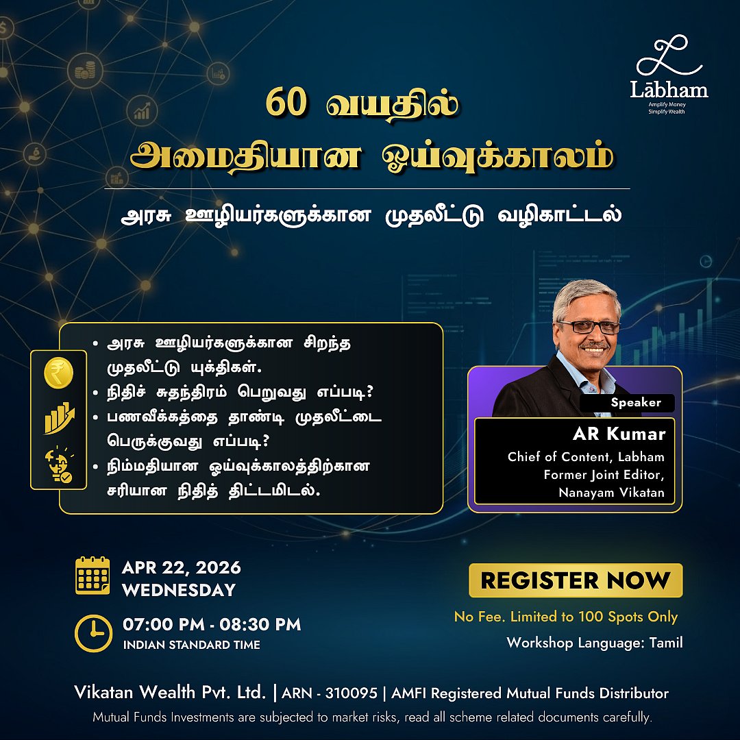 100 பேருக்கு மட்டுமே அனுமதி. முன்பதிவு செய்ய இங்கே க்ளிக் செய்யவும்: https://labham.money/events/webinar-apr22-2026?utm_source=vikatan_com&utm_medium=article&utm_campaign=webinar_apr22_2026