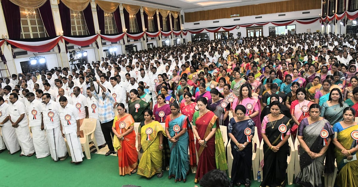 அனைத்திந்திய அண்ணா திராவிட முன்னேற்றக் கழகம் புரட்சித் தலைவர் எம்.ஜி.ஆர்., புரட்சித் தலைவி அம்மா ஆகிய இருபெரும் தலைவர்களின் வழியிலே செயல்பட்டு, அசைக்க முடியாத மக்கள் செல்வாக்கு பெற்ற அரசியல் தலைவராகத் திகழ்ந்து வரும் கழகப் பொதுச் செயலாளர், மாண்புமிகு சட்டமன்ற எதிர்க்கட்சித் தலைவர் தமிழ் நாடு முன்னாள் முதலமைச்சர் 'புரட்சித் தமிழர்' மாண்புமிகு எடப்பாடி K. பழனிசாமி அவர்களை 2026-ல் மீண்டும் முதலமைச்சராக்குவோம் என சூளுரை ஏற்போம்