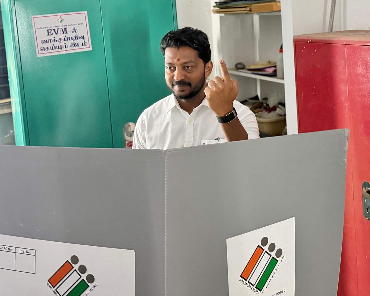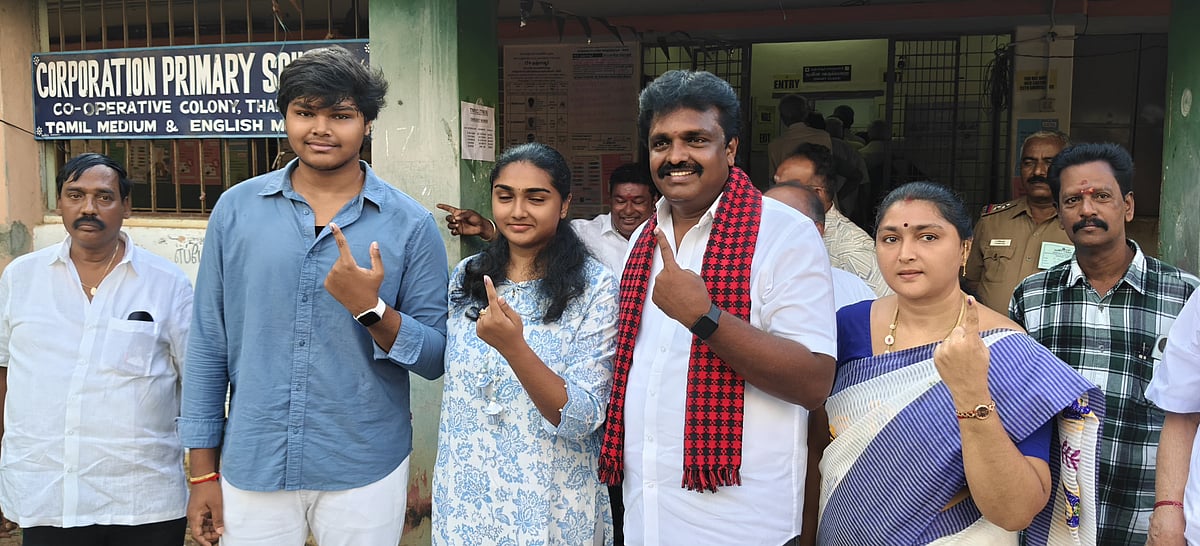 தமிழக சட்டமன்றத் தேர்தல் இன்று (ஏப்ரல்.23) நடைபெற்று வருகிறது. அரசியல் தலைவர்கள், சினிமா பிரபலங்கள், பொதுமக்கள் என எல்லோரும் ஆர்வத்துடன் சென்று வாக்களித்து வருகின்றனர். இந்நிலையில் திருவண்ணாமலை மாவட்ட... மேலும் பார்க்க