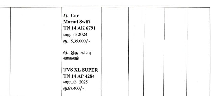 விள்பட்டி கிராமம், கொடைக்கானல் உட்பட பல இடங்களில் நிலங்கள் மற்றும் வணிகக் கட்டடங்கள்.