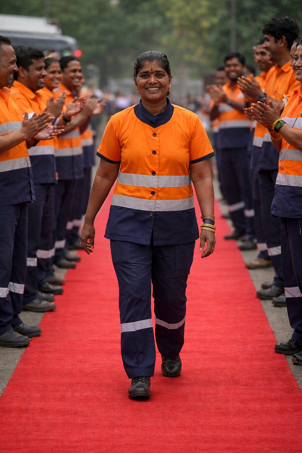 ரெண்டு பேர் வருமானத்துலதான் குடும்பத்தை நடத்திட்டு இருந்தோம். சொத்து, சுகம்னு எதுவும் கிடையாது. அதனால ஒரு நாளும் லீவ் போட மாட்டேன். சம்பளம் போயிரும்ல. என் வேலைதான் எனக்கு எல்லாம். குப்பை அல்லுறேன்னு ஒரு நாளும் முகம் சுளிச்சதில்ல. எல்லோரும் ஒரு வேலை பார்த்தாதான சமூகம் சமமாக இருக்கும். படிச்சவங்க அவங்களுக்கு தெரிஞ்ச வேலையை செய்றாங்க. படிக்காத நான் எனக்குத் தெரிஞ்ச வேலையை செய்றேன். இதுல அசிங்கப்படவோ, அவமானப்படவோ என்ன இருக்கு. தூய்மைப் பணியாளர் இல்லனா நாடு சுத்தமா இருக்குமா? போலீஸ்காரங்களுக்கு யூனிஃபார்ம் போட்டா கெத்து மாதிரி எனக்கும் என் யூனிஃபார்ம் கெத்துதான்" பெருமையைக் கடத்துக்கிறது பத்மா அக்காவின் முகம்.