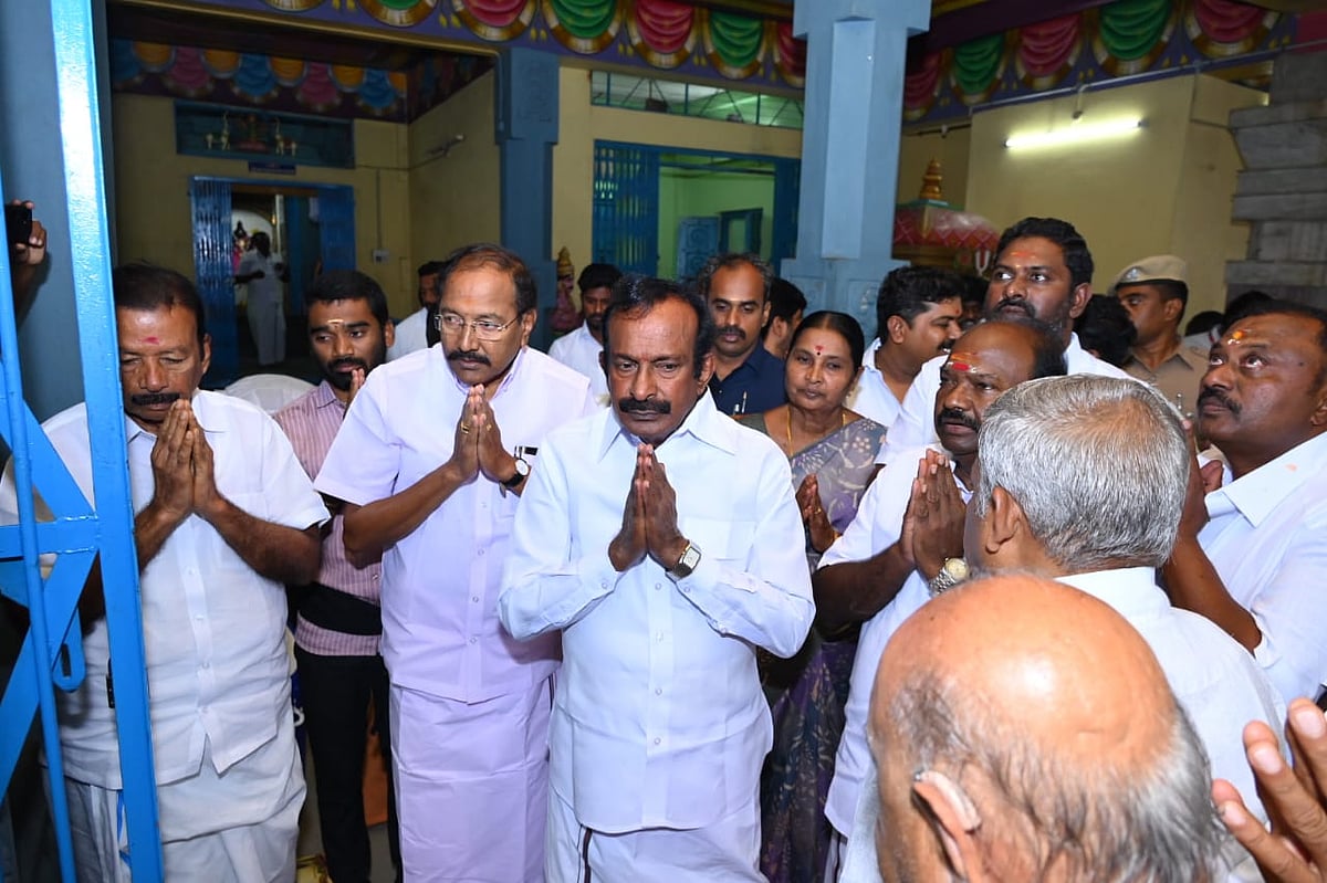 இந்த நிலையில், நேற்று காலை கொங்கு பெருமாள் கோவிலுக்கு குமாரபாளையம் தொகுதியில் சட்டமன்ற உறுப்பினரும், முன்னாள் அமைச்சருமான தங்கமணி அதிமுக நிர்வாகிகளுடன் சுவாமி தரிசனம் செய்ய கோவிலுக்கு வந்தார். பின்னர், கோவிலில் சிறிது நேரம் காத்திருந்தார். அப்போது யாரும் எதிர்பாராத வகையில் கூட்டுறவுத்துறை அமைச்சர் முத்துசாமி, ஈரோடு கிழக்கு எம்எல்ஏ சந்திரகுமார் உள்ளிட்ட திமுக நிர்வாகிகள் கோவிலுக்கு வந்தனர். அமைச்சர் முத்துசாமி வணக்கம் தெரிவிக்க, அவரை முன்னாள் அமைச்சர் தங்கமணி கை கொடுத்து கோவிலுக்குள் அழைத்துச் சென்றார். பின்னர், இருவரும் இணைந்து சுவாமி தரிசனம் செய்தனர். தொடர்ந்து கோவில் வளாகத்தை அமைச்சர் முத்துசாமி மற்றும் தங்கமணி அரைமணி நேரம் ஆலோசனை நடத்திவிட்டு இருவரும் தனித்தனியாக அங்கிருந்து புறப்பட்டுச் சென்றனர்.