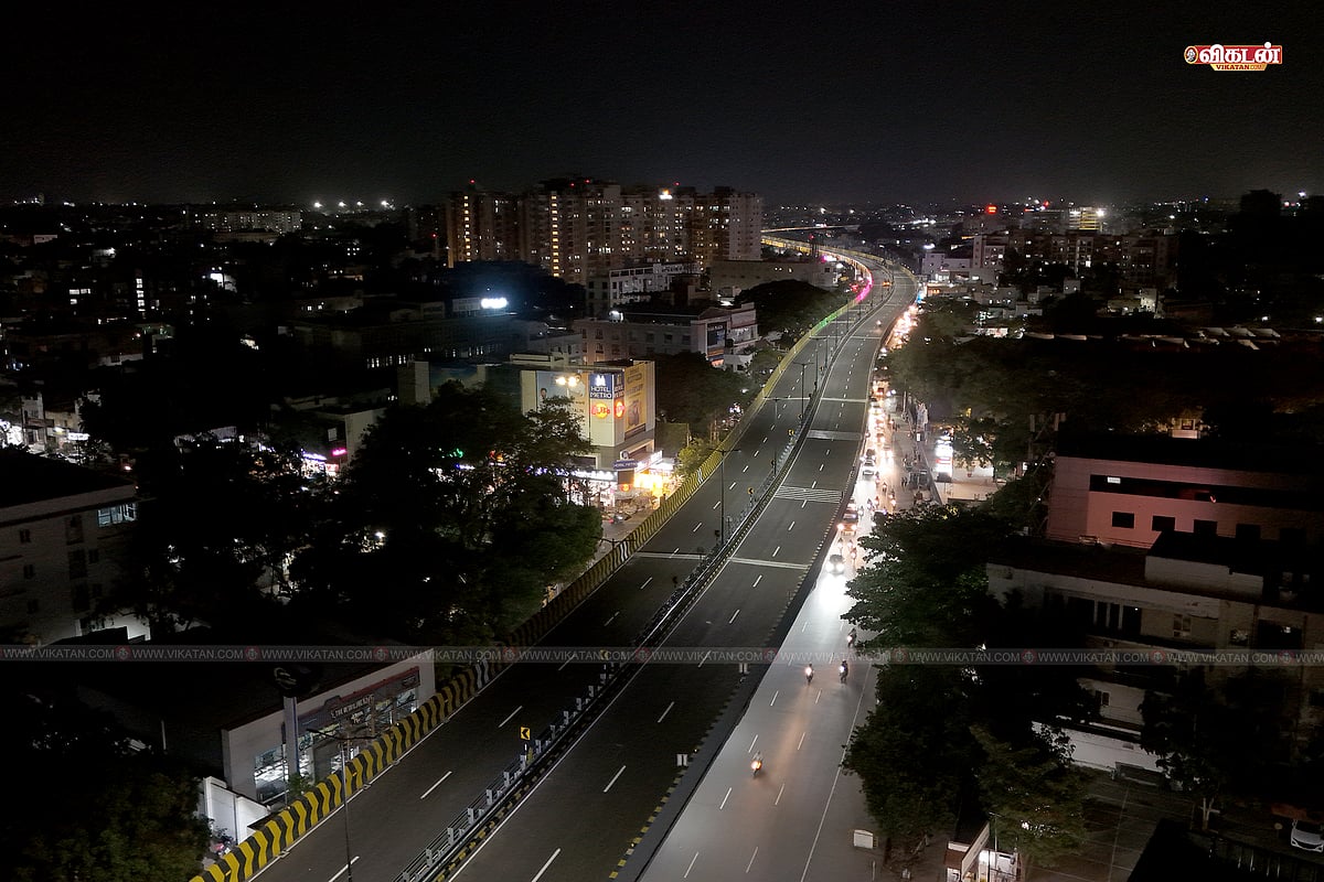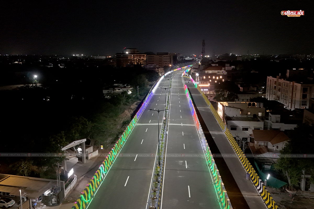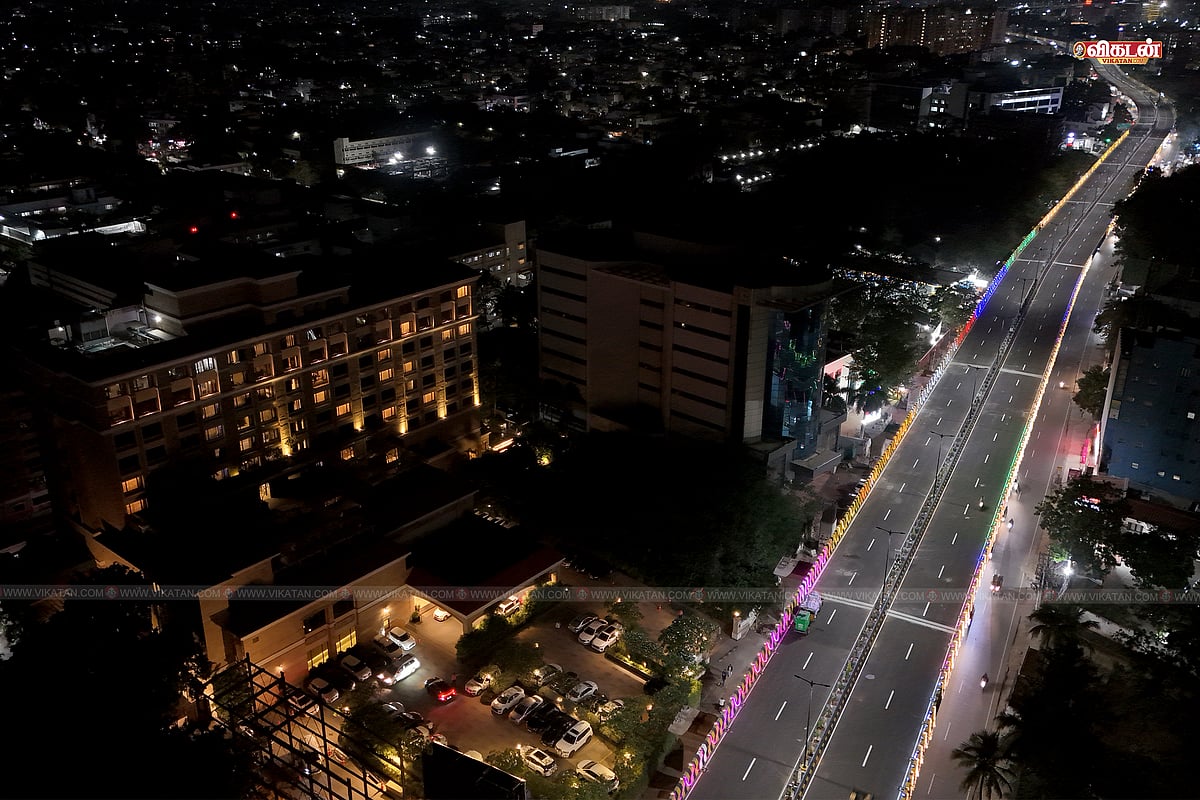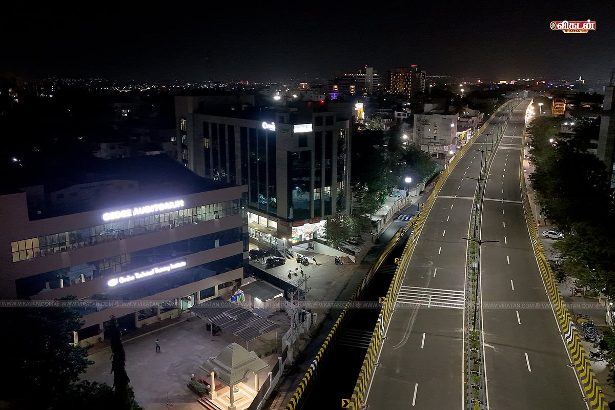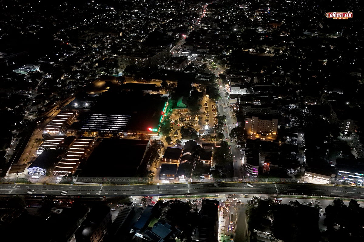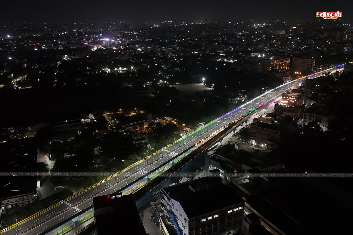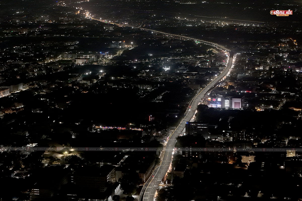 கோவை: இரவின் மின்னொளியில் 10.1 கி.மீ நீளமுள்ள புதிய ஜி.டி. நாயுடு மேம்பாலம் | Exclusive Drone Shots