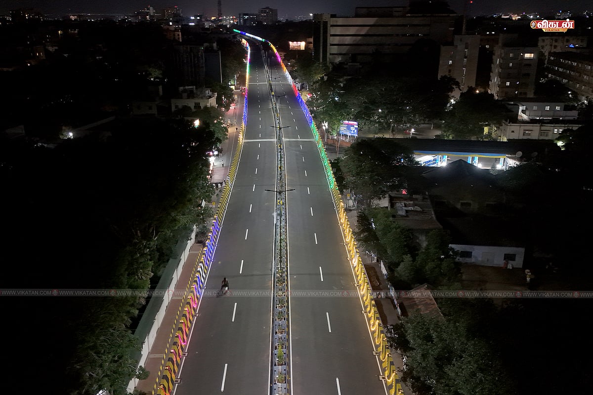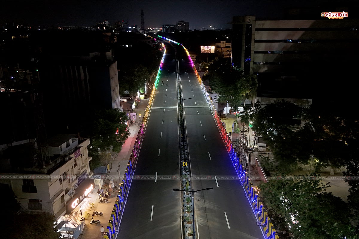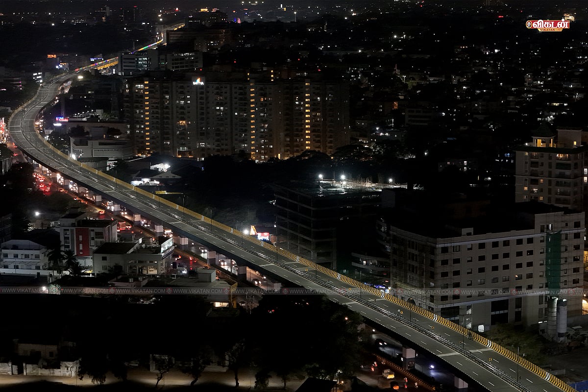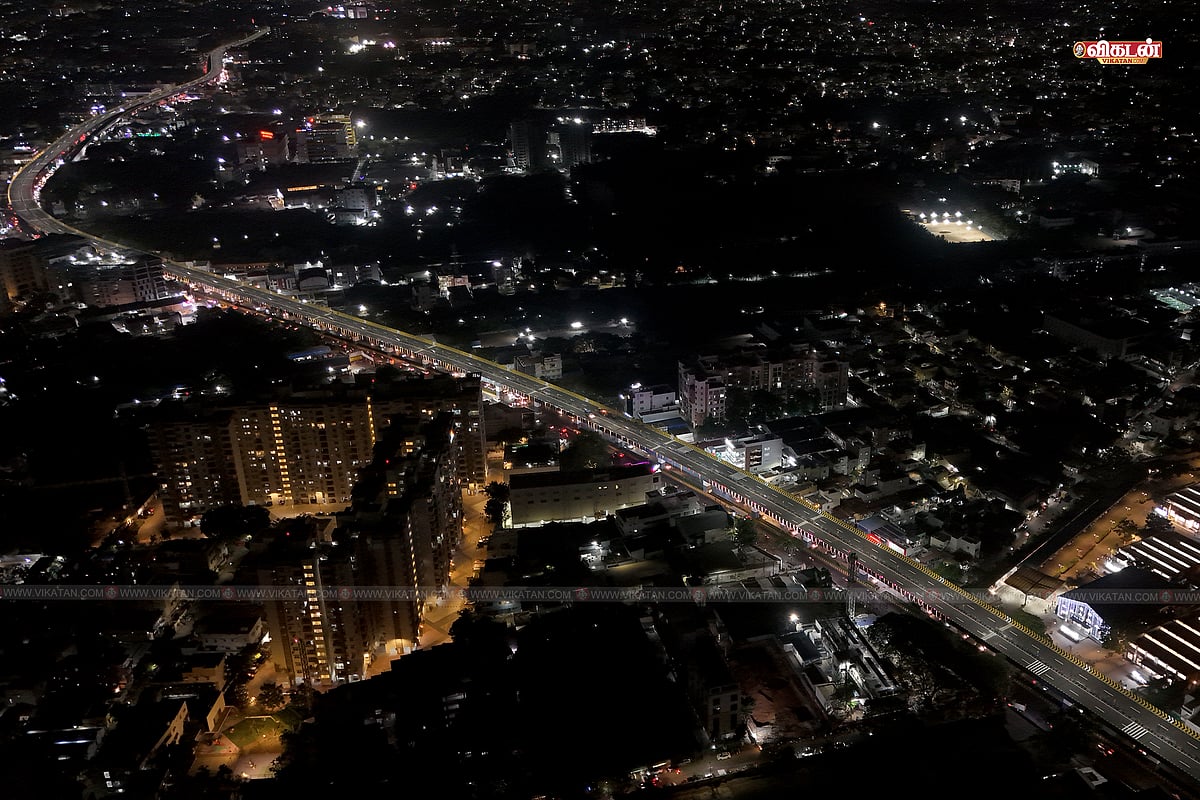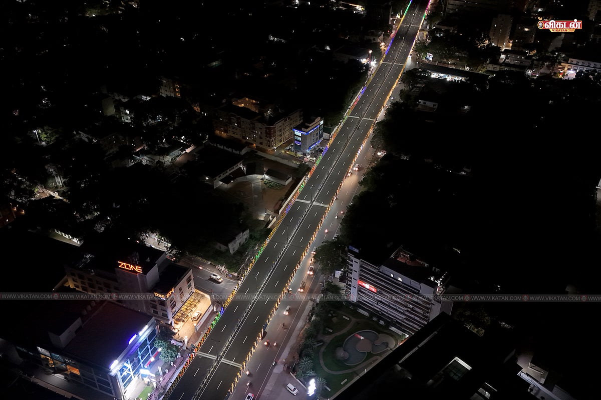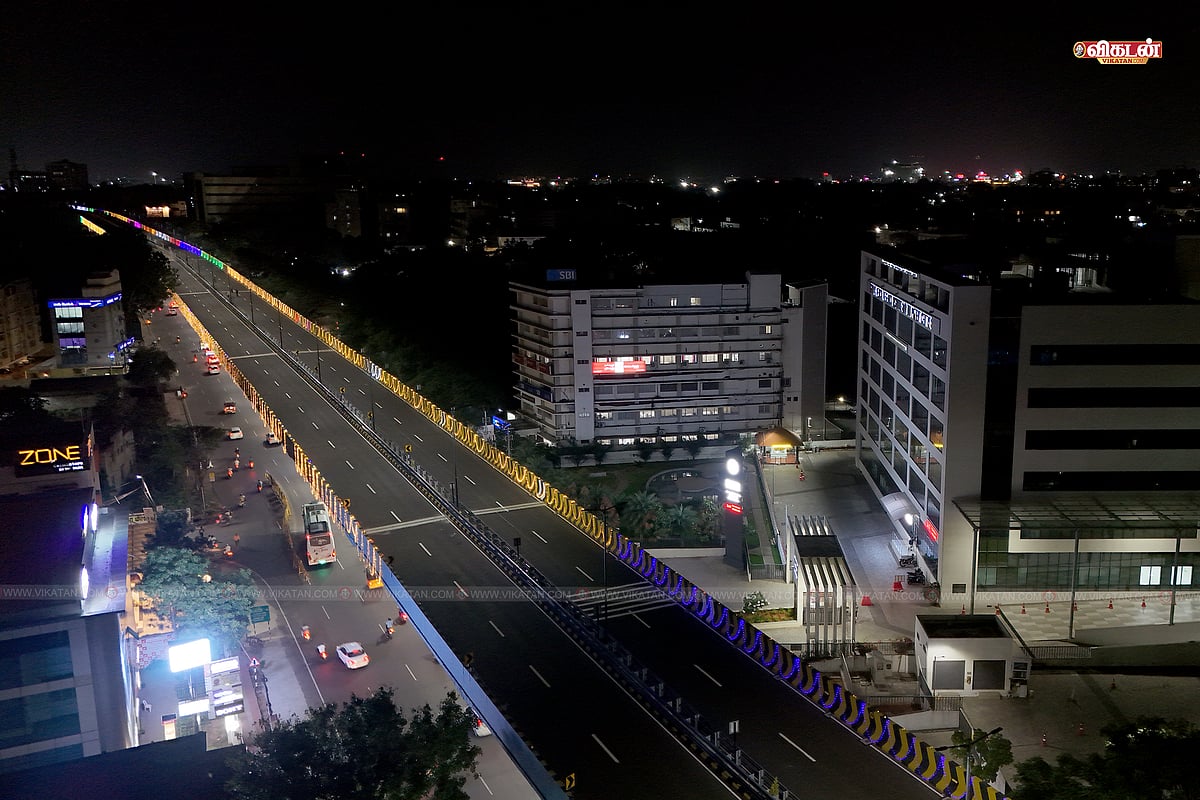 கோவை: இரவின் மின்னொளியில் 10.1 கி.மீ நீளமுள்ள புதிய ஜி.டி. நாயுடு மேம்பாலம் | Exclusive Drone Shots