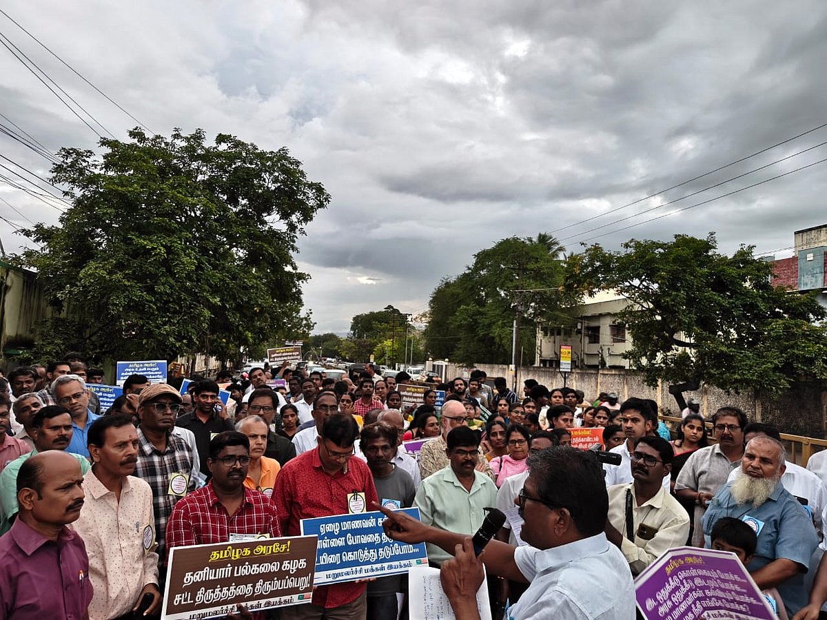 கோவை: மாணவர்கள், ஆசிரியர்களுக்கு அநீதி - தனியார் பல்கலைக்கழக மசோதாவுக்கு எதிராக போராட்டம்