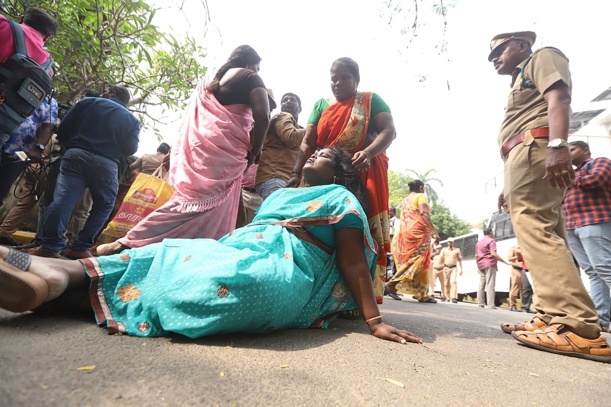 கடந்த 50 நாள்களுக்கு மேலாக உயர் நீதிமன்ற அனுமதியோடு அம்பத்தூரில் உண்ணாநிலை போராட்டத்திலும் ஈடுபட்டு வருகின்றனர். சமீபத்தில் தேனாம்பேட்டையில் உள்ள திமுக-வின் தலைமை அலுவலகமான அண்ணா அறிவாலயத்தை தூய்மைப் பணியாளர்கள் முற்றுகையிட முயன்று கைதாகினர்.