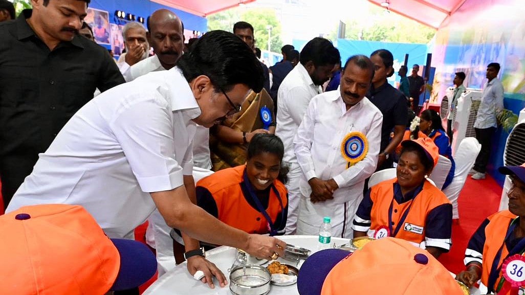 தூய்மைப் பணியாளர்களுக்கு 3 வேளை உணவு வழங்கும் திட்டத்தை, தமிழ்நாடு முதலமைச்சர் மு.க.ஸ்டாலின் இன்று தொடங்கி வைத்தார்.