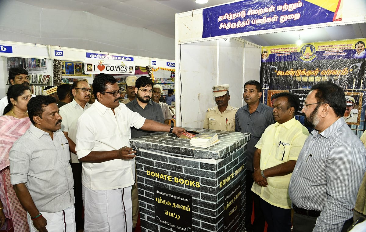 அப்போது, சிறைகள் மற்றும் சீர்திருத்த துறையின் சார்பாக புத்தகங்கள் தானமாக வாங்குவதெற்கென பெட்டி ஒன்று வைக்கப்பட்டிருந்தை பார்த்த கலெக்டர் மற்றும் எம்.பி தங்க தமிழ்செல்வன் ஆகியோர், புத்தகங்களை வாங்கி அவற்றை தானமாக வழங்கினர். இந்த புத்தக திருவிழாவனது 21.12.2025 முதல் 28.12.2025 வரை 8 நாள்கள் நடைபெறவுள்ளது.