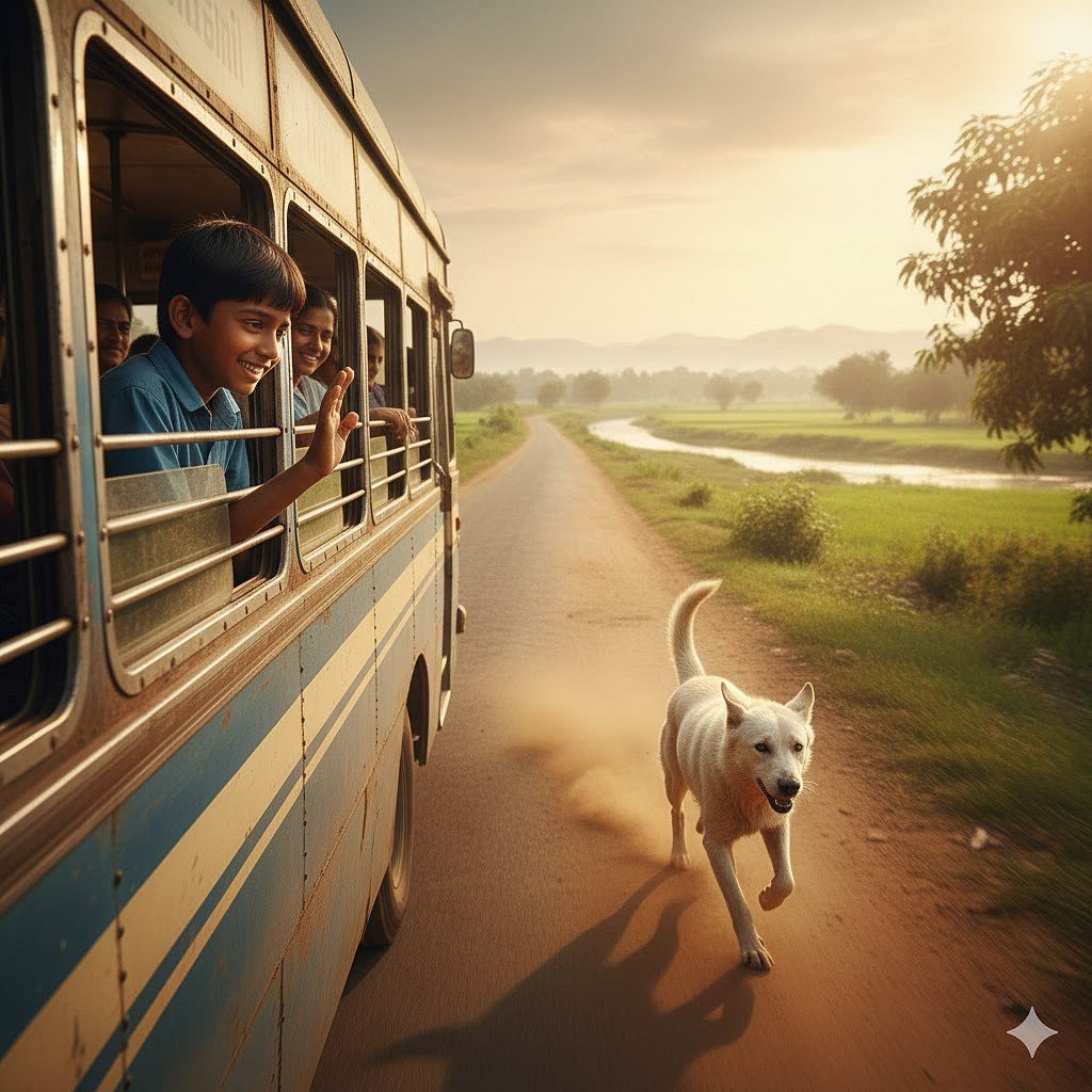பேருந்தின் ஜன்னல் வழியாக தலையை விட்டு அவன் ஓடிவருவதை தான் கடைசியாக பார்த்தேன், எங்கிருந்தோ வந்து என்னோடு ஒட்டிக்கொண்டு என் கால்களில் இடுக்கில் விளையாடிய ஒரு தற்க்காலிக நண்பனாக அவன் மறைந்து போனான்,