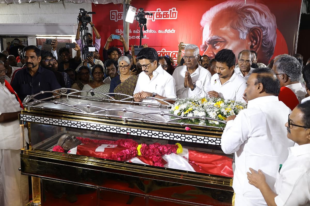 அவரது உடல் தி. நகரில் உள்ள இந்திய கம்யூனிஸ்ட் கட்சி அலுவலகத்தில் பொதுமக்கள் அஞ்சலிக்காக வைக்கப்பட்டிருக்கிறது.