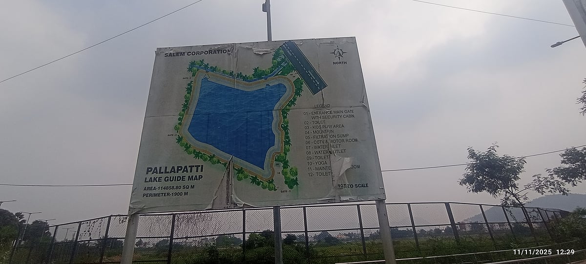 சேலம் மாவட்டம், மூன்று ரோடு அருகில் அமைந்துள்ள முத்தமிழறிஞர் கலைஞர் மு.கருணாநிதி நூற்றாண்டு பள்ளப்பட்டி ஏரிப் பூங்கா தற்போது பழுதடைந்து புனரமைப்பு பணிகளை எதிர்நோக்கி காத்திருக்கிறது.