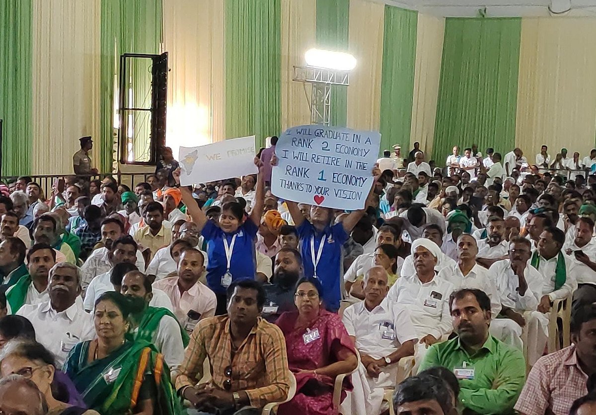 முன்னதாக பிரதமர் மோடிக்கு மாட்டு வண்டி நினைவு பரிசாக வழங்கப்பட்டது. இயற்கை விவசாயத்தில் புரட்சி ஏற்படுத்தியதற்காக நம்மாழ்வாருக்கு பாரத ரத்னா விருது வழங்க வேண்டும் என்று விவசாயிகள் கோரிக்கை வைத்தனர். மோடி பேசிக் கொண்டிருக்கும்போது, தனியார் பள்ளியைச் சேர்ந்த ஸ்ரிங்கா, மித்ரா ஆகிய இரண்டு சிறுமிகள் பதாகைகளை ஏந்தி மோடியின் கவனத்தை ஈர்த்தனர்.