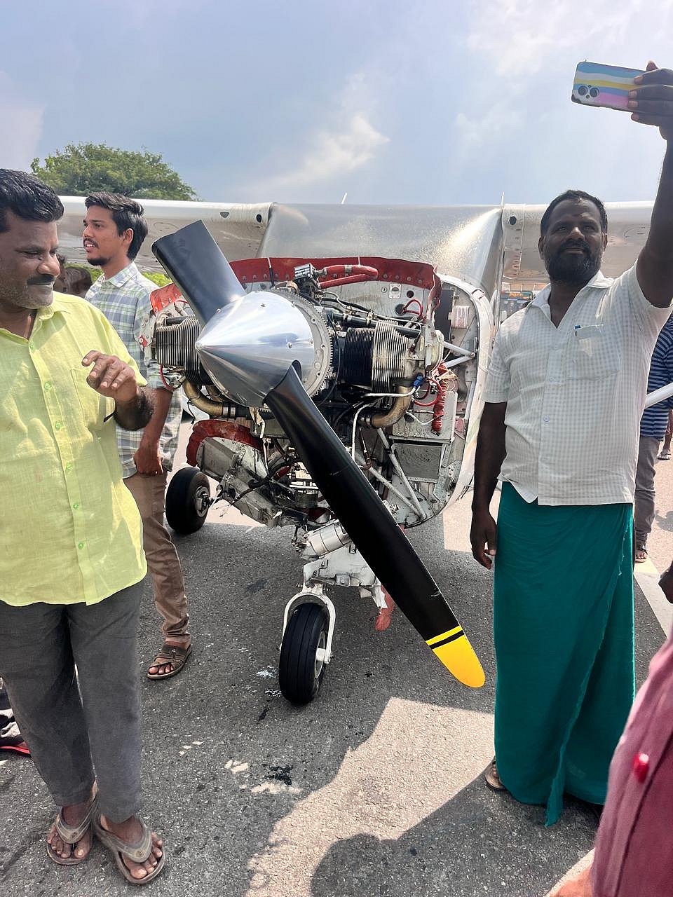 மேலும், அந்த விமானத்தில் பயணித்த விமானிகள் உட்பட இருவர் காயமடைந்துள்ளதாக கூறப்படுகிறது. இந்நிலையில், விமானம் அவசரமாக நெடுஞ்சாலையில் தரையிறக்கப்பட்டதைக் கண்ட வாகன ஓட்டிகள் மற்றும் பொதுமக்கள் அதிர்ச்சியில் உறைந்தனர். இருப்பினும், யாருக்கும் பாதிப்பு இல்லை என்று அறிந்த பிறகு, இந்த வினோத காட்சியைப் பார்ப்பதற்காக அப்பகுதியில் மக்கள் கூட்டம் குவியத் தொடங்கியது. அதில் பலரும், அந்த சிறிய ரக விமானம் முன்பு நின்று செல்ஃபி எடுத்துக்கொண்டனர்.