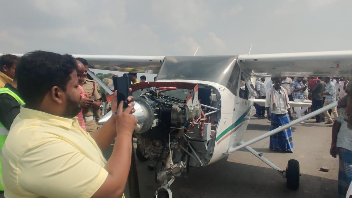 புதுக்கோட்டை டு திருச்சி சாலையில் தரையிறக்கப்பட்ட விமானம்; அதிர்ச்சியடைந்த மக்கள்! - என்ன காரணம்?