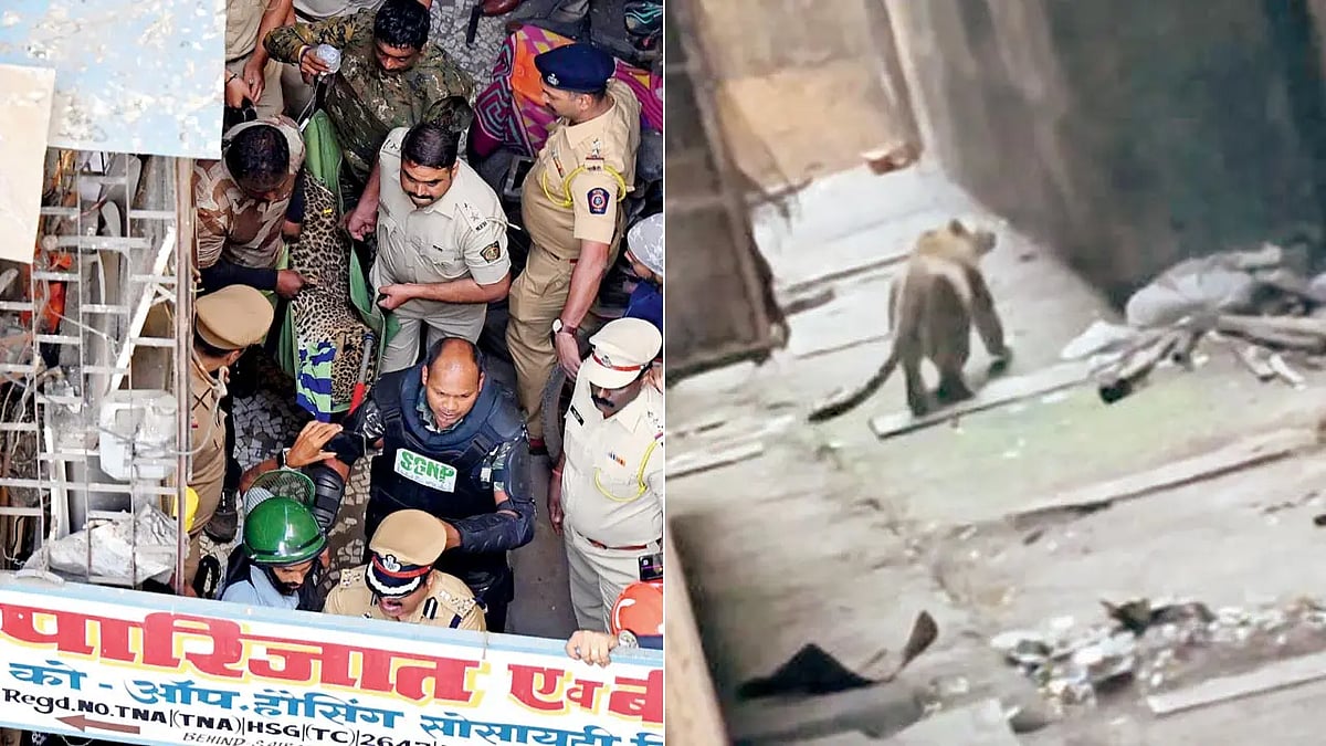 மும்பை கட்டடத்தில் நுழைந்து 7 பேரை தாக்கிய சிறுத்தை புலி - பல மணிநேரம் போராடி பிடித்த வனத்துறை