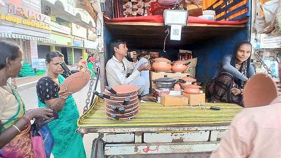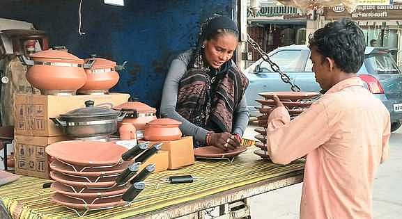ராஜஸ்தானின் பாரம்பரியமான கலைவண்ணங்களுக்கு தனித்த ஈா்ப்பு இருந்து வருகிறது. தற்போது, சட்டி, ஜாடி உள்ளிட்ட மண் பாண்டங்கள் கலைநயம் மிக்கதாக வடிவமைக்கப்பட்டு வாகனங்களில் ஆங்காங்கே விற்பனை செய்யப்பட்டு வருகிறது. தமிழ்மொழியில் ஒலிக்கும் ஒலிபெருக்கியின் வாயிலாக விளம்பரம் செய்யப்படுகிறது. கைப்பிடியுடன் பொருத்தப்பட்ட மண்சட்டி ரூ. 50க்கு விற்கப்படுகிறது.