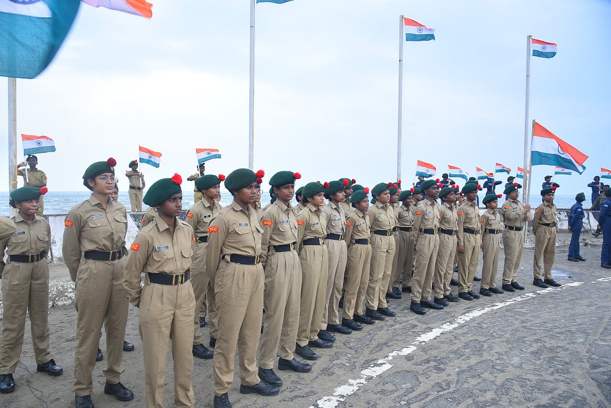 வந்தே மாதரம் 150 : அரிச்சல்முனையில் NCC மாணவர்கள், ராணுவ வீரர்களுடன் தேசியக்கொடி ஏந்தி மரியாதை!