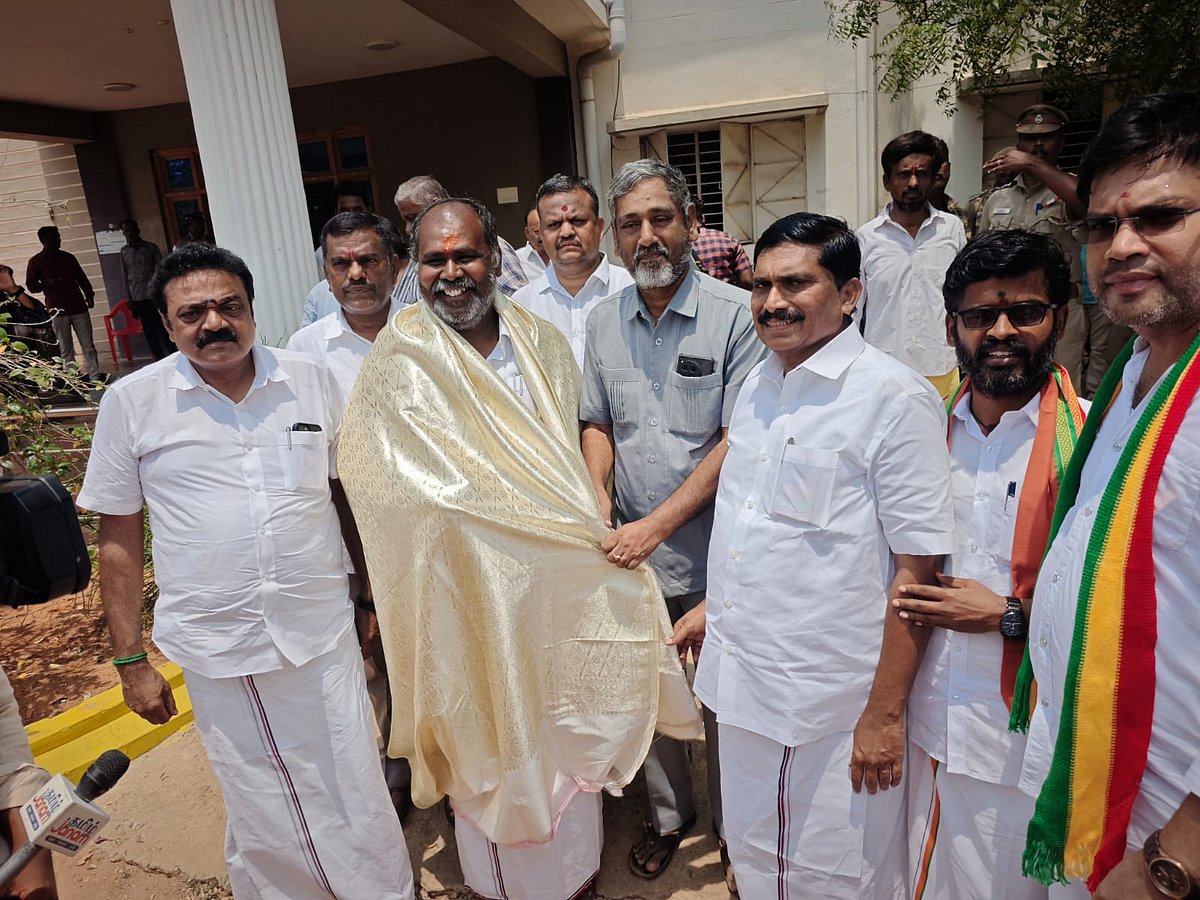 வேட்பு மனுத் தாக்கல் செய்ய தொண்டர்கள் படைசூழ வந்த ஆர். பி. உதயகுமார் | Photo Album