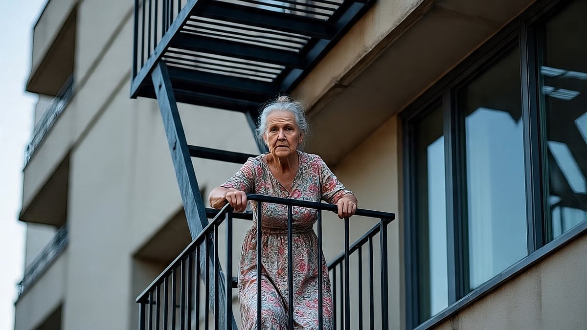 பொதுவாக இது போன்ற சூழலில் பதற்றமடைவது இயல்பு, ஆனால் இந்தப் பாட்டியோ சற்றும் யோசிக்காமல் தனது ஜன்னல் வழியாக வெளியேறி, கட்டடத்தின் வெளிப்புறச் சுவற்றின் வழியாகக் கீழே இறங்கத் துணிந்தார்.